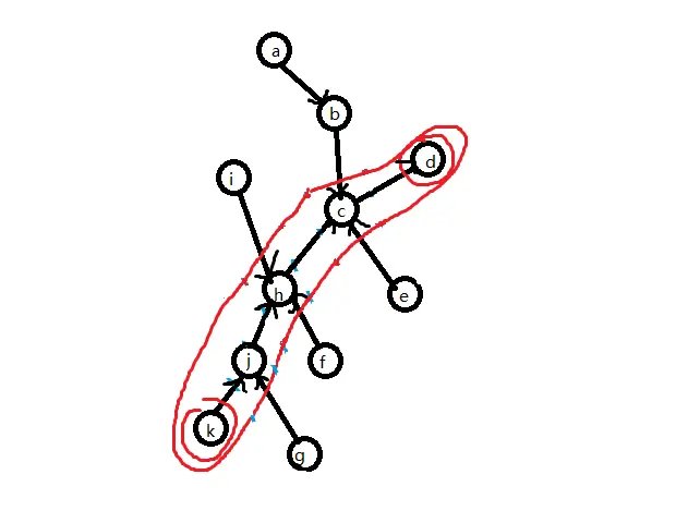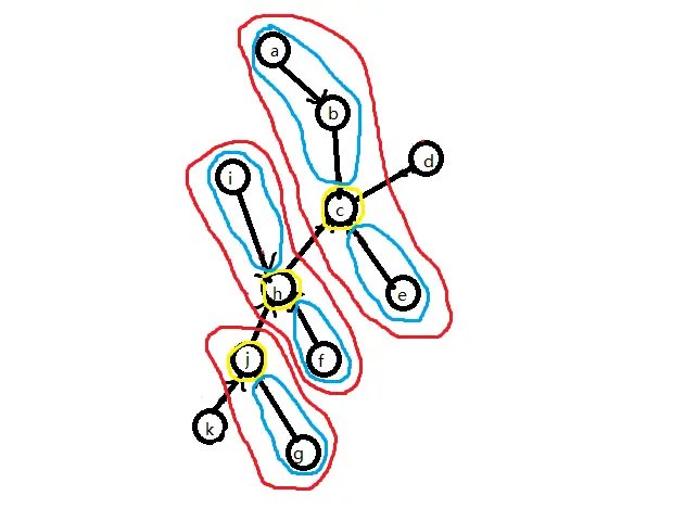 由树收缩的基本操作可知,簇路径上的点、边 ( 𝑗 , ℎ , 𝑐 , 𝑗 ℎ , ℎ 𝑐 ) ( j , h , c , j h , h c ) 的信息最后是通过 Compress 操作才加入 𝐶 ( 𝑘 , 𝑔 ) C ( k , g ) 的,而的非簇路径点 ( 𝑎 , 𝑏 , 𝑖 , 𝑓 , 𝑔 , 𝑒 , 𝑖 𝑔 , ⋯ ) ( a , b , i , f , g , e , i g , ⋯ ) 是通过 Rake 操作才加入 𝐶 ( 𝑘 , 𝑔 ) C ( k , g ) 的。